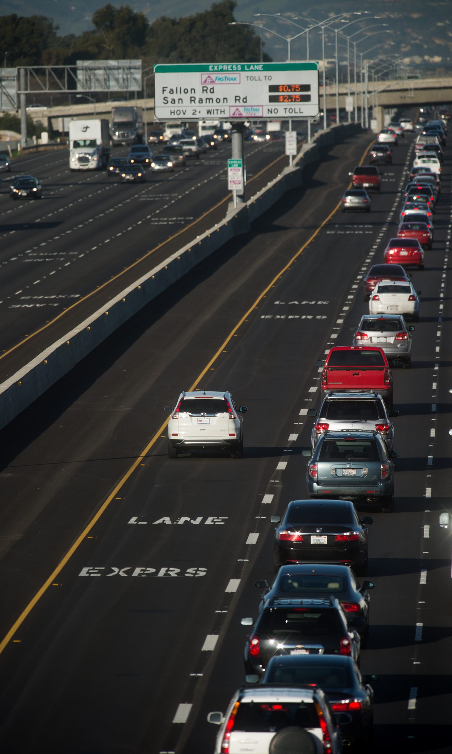 580HOV_OPENING_car in lane with backed up GP lanes